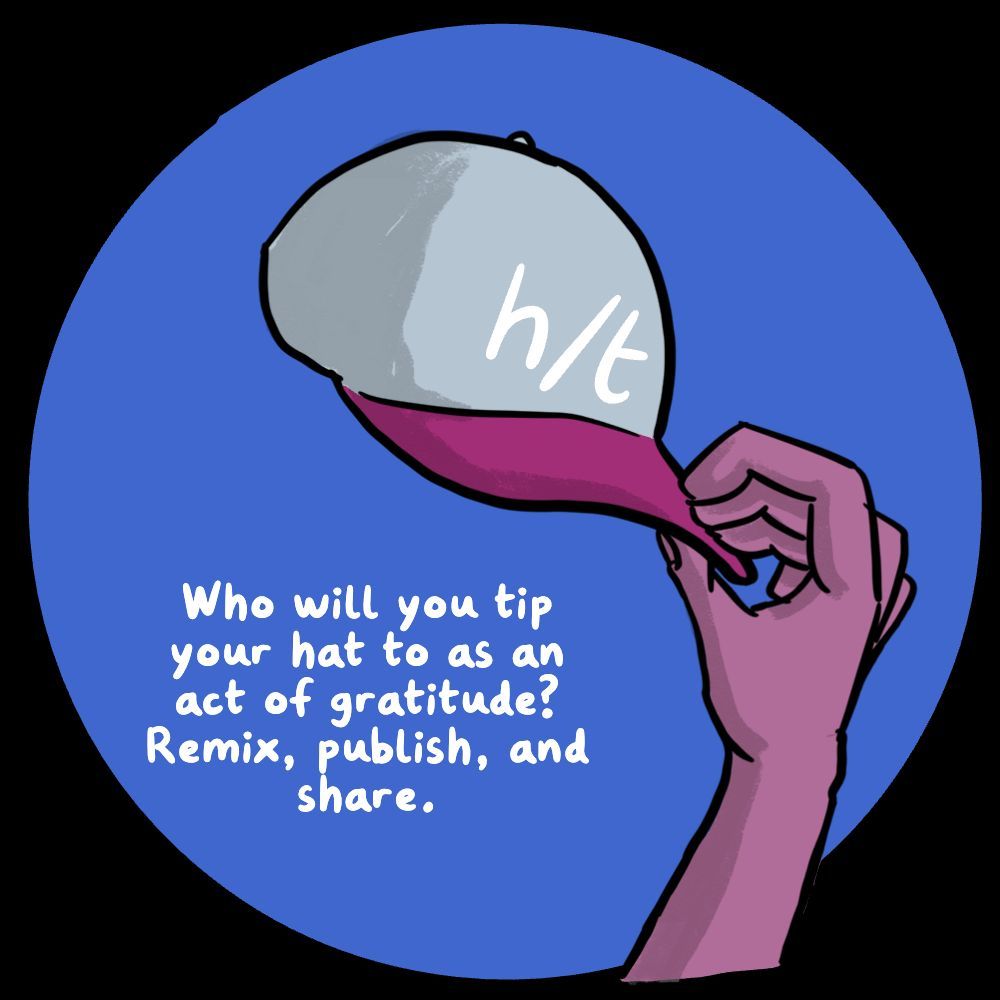 I’m hoping that others who come across large and small acts of sharing and support in Open Education, to consider taking maybe 10 minutes to remix this hat/tip - you can choose from a set of hat styles, change the colors in the image, and write your own message.