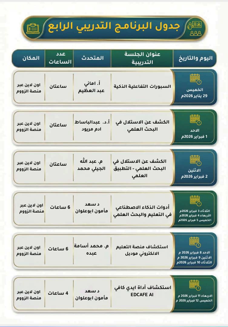 In solidarity with Open Education Week 2026, the Almayzab Digital Library proudly announces the completion of its fourth training cohort for university faculty. This initiative reflects our mission to empower academics with the digital skills needed to thrive in higher education and research.