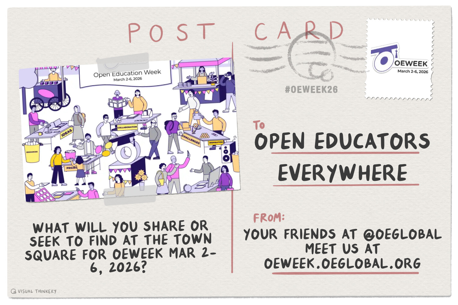 We are framing OEWeek as the "Town Square: of Open Education in the sense of the type of places around the world that Wikipedia describes as “open public space commonly found in the heart of a traditional town or city, and which is used for community gatherings.”