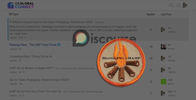 We had launched this concept as an experiment of the Open Pedagogy Adventure, asking community members to share projects, research they were working on as new topics, returning to post short updates, but more importantly, making it available for colleagues to engage in discussion.