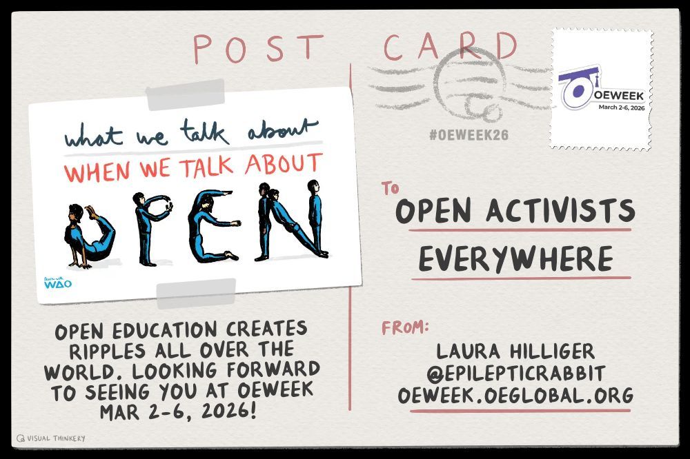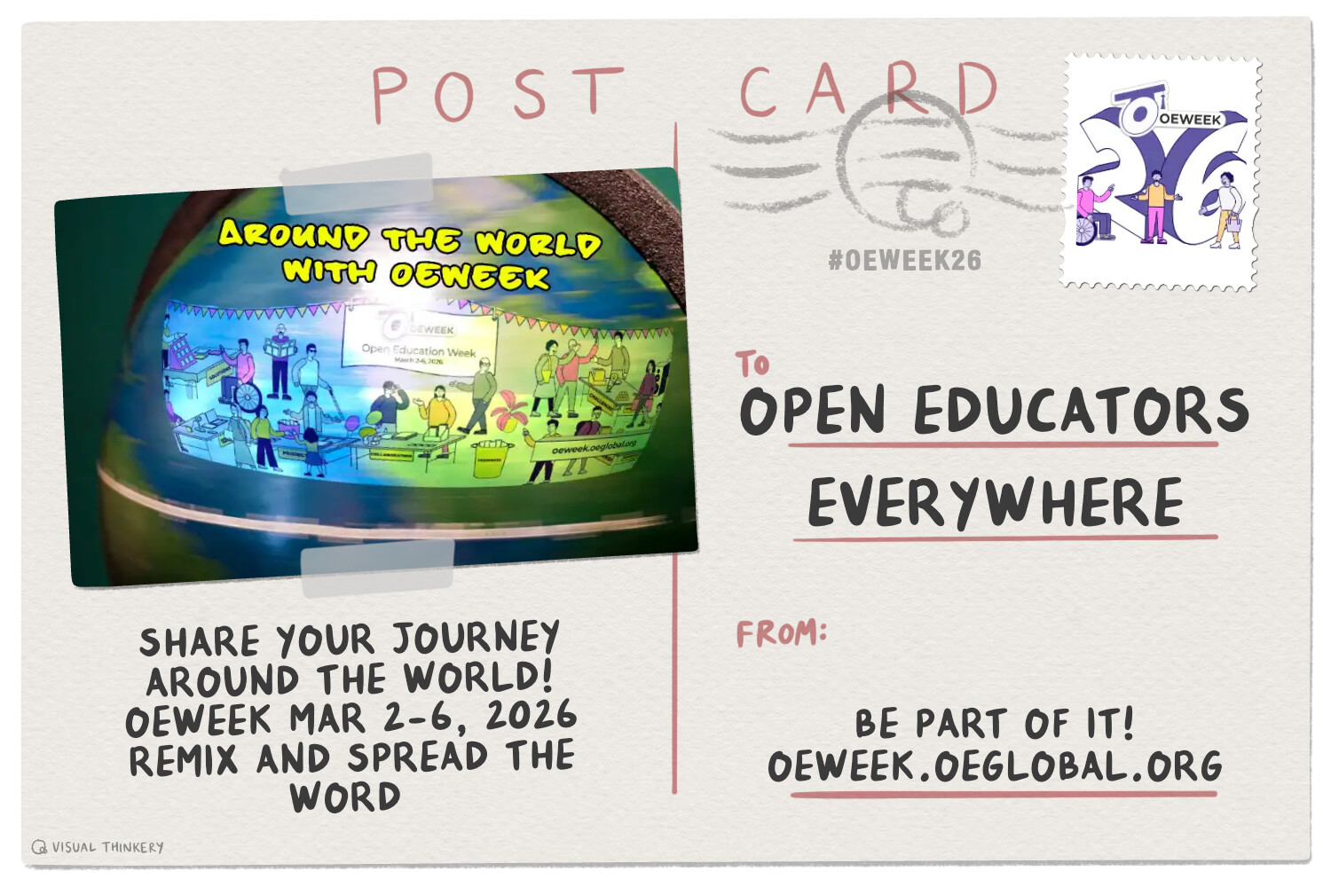 The journey of Open Education Week is only a month away… but you do not have to wait to be part of the activities before, during and after. Take a few clicks and keystrokes to customize your own message with the OEWeek 2026 Remixable Digital Postcard.